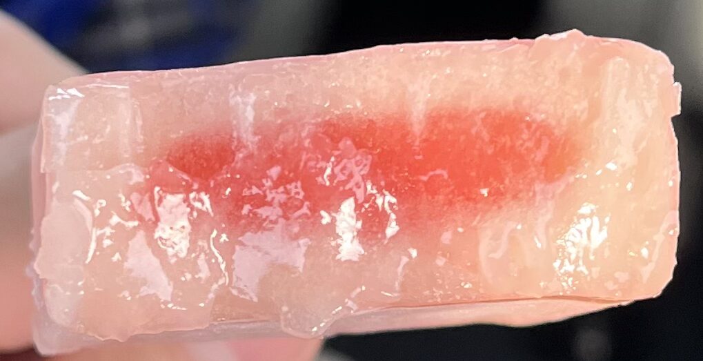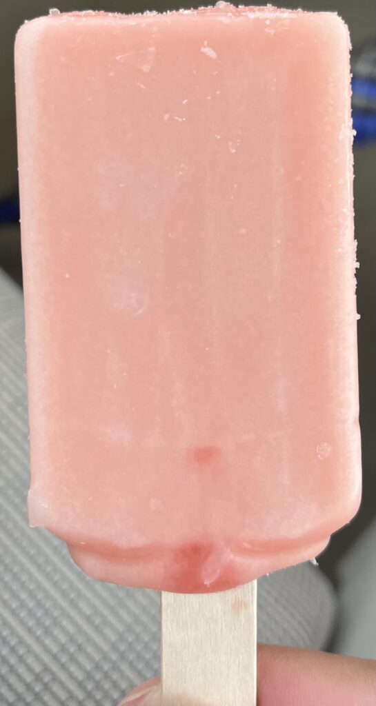 このアイスは二層構造になっていて、外側の部分はシャリっとしていて、内側の部分がジャムのようになっています🙂