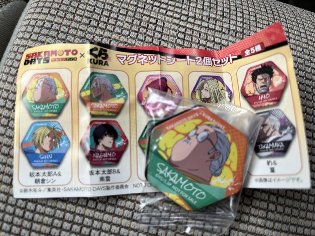 今回は1回当たりました❗️景品はサカモトデイズのマグネット❗️